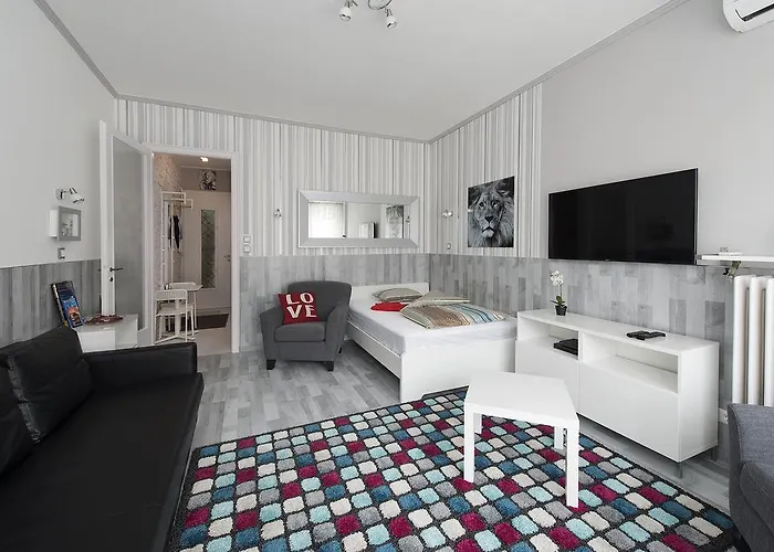1-slaapkamer Monroe Central Boedapest appartementen liggen op alleen 1 km afstand van het treinstation Nyugati en op 5 minuten wandelen van de Grote Synagoge van Boedapest. Dit appartement van 35 m² biedt uitzicht op de stad en garandeert de veiligheid van de gasten met 24 uur bewakingsdienst.